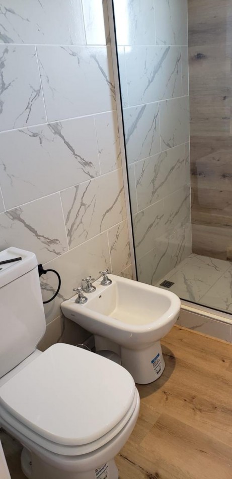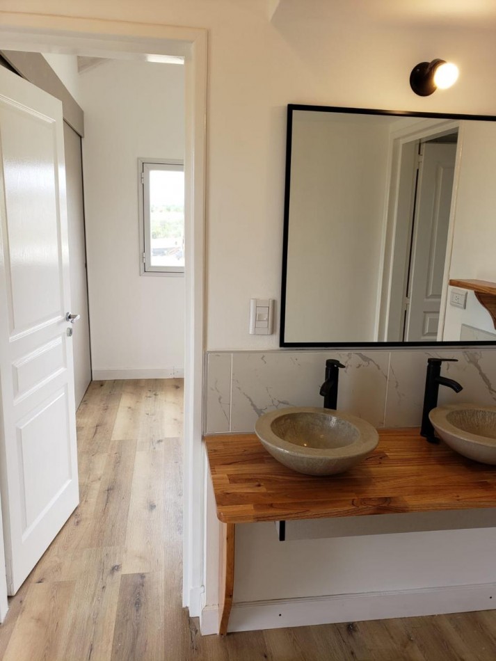 2 dormitorios en planta alta, uno de ellos con balcón al frente , baño con doble bacha y mampara de vidrio. Placares empotrados.