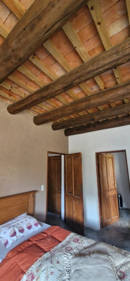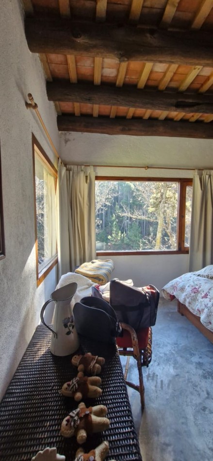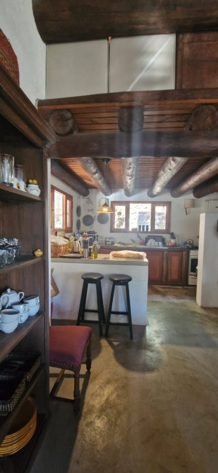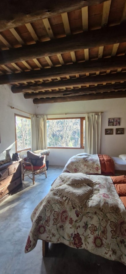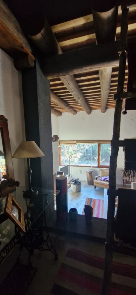 La casa cuenta con 142 m² construidos, distribuidos en tres habitaciones —una en suite, una segunda en entrepiso con vistas únicas, y una tercera recientemente anexada, ideal para atelier, taller o depósito (presenta un detalle de humedad a resolver).